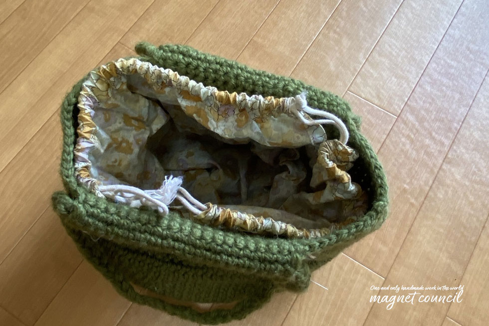 オリジナルの編み方で作っています。♪ 中に巾着が入っています★